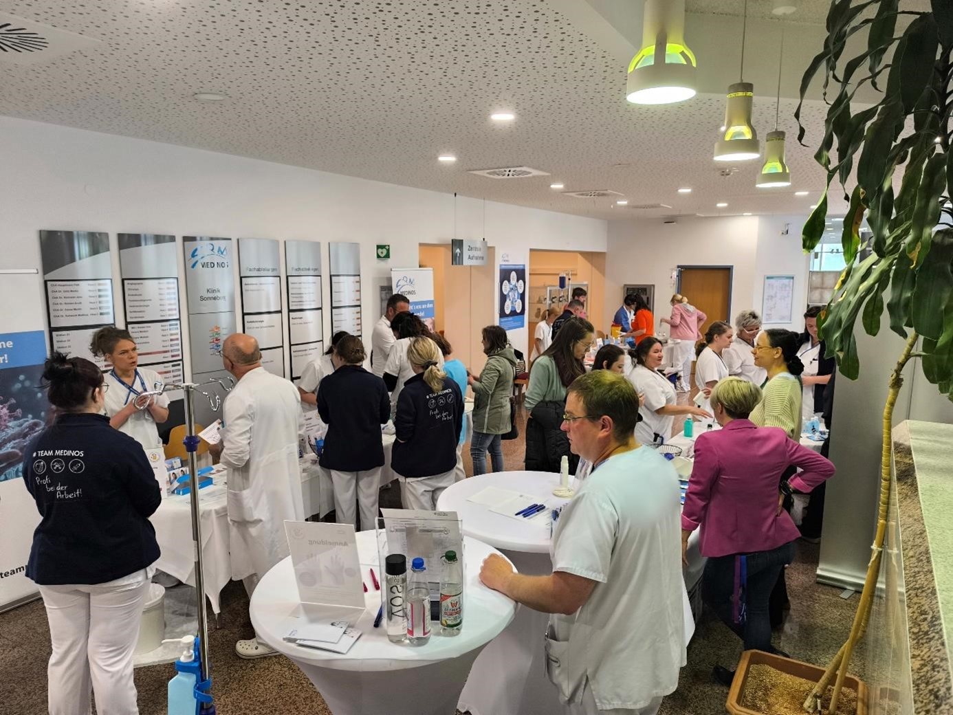 Auch die Hautfeuchtemessung wurde sehr gut von den Teilnehmern der Veranstaltung angenommen. Hierbei konnte nachgewiesen werden, dass das Desinfektionsmittel, welches vor Ort bereitgestellt wurde, nicht wie gedacht die Haut austrocknet, sondern stattdessen einen rückfettenden Effekt enthielt. Im Zuge der Hautfeuchtemessung wurde die MEDINOS Klinik Sonneberg auch unterstützt von den Firmen Schülke und Hartmann, die zudem Marktneuheiten vorgestellten.
