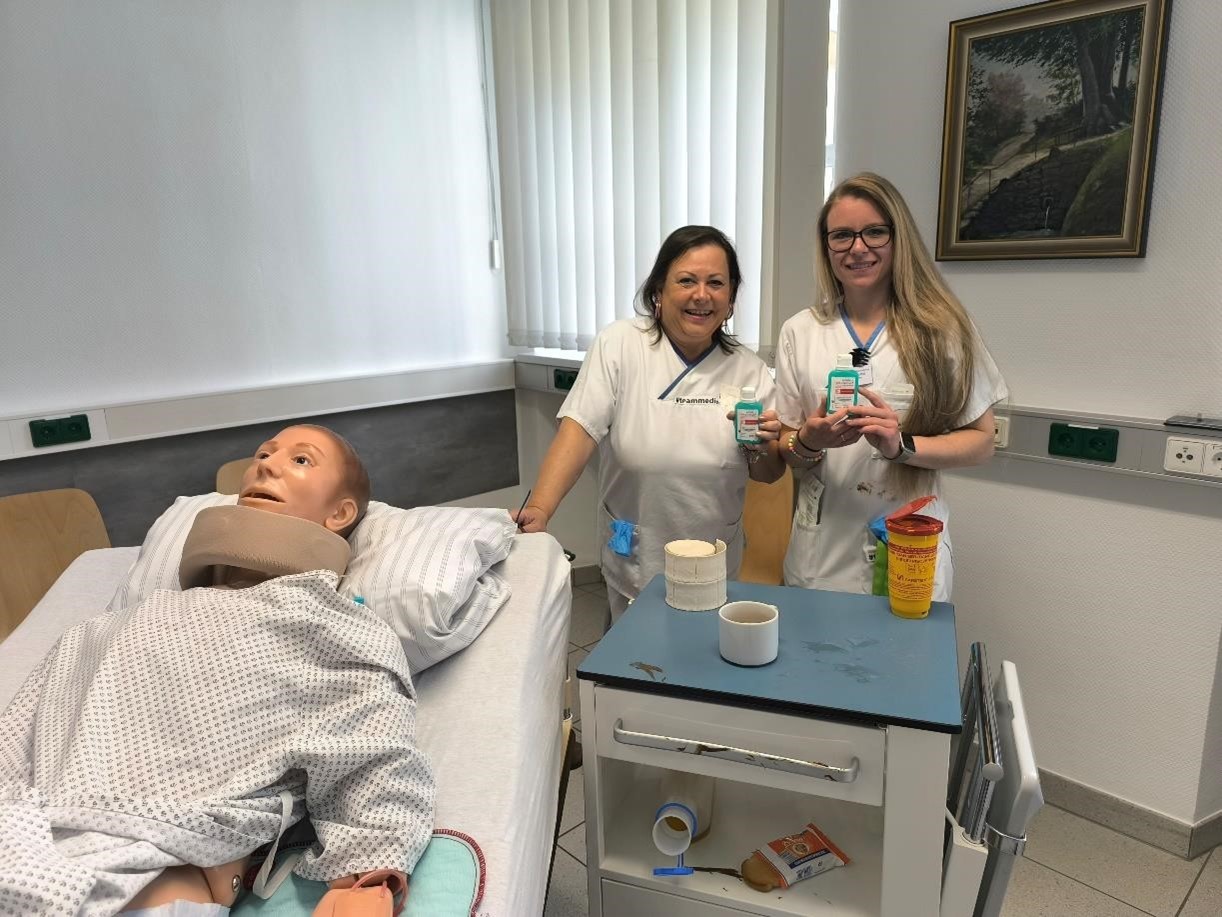 Ein besonderes Highlight war das Horror-Patientenzimmer. Dabei wurden mehrere Hygienefehler inszeniert, die das Personal erkennen und benennen musste. Dazu gehören lange, ungebundene Haare des Personals, lackierte Fingernägel, verschmutzte, kontaminierte Kleidung und ein falscher Umgang mit Medizinprodukten.