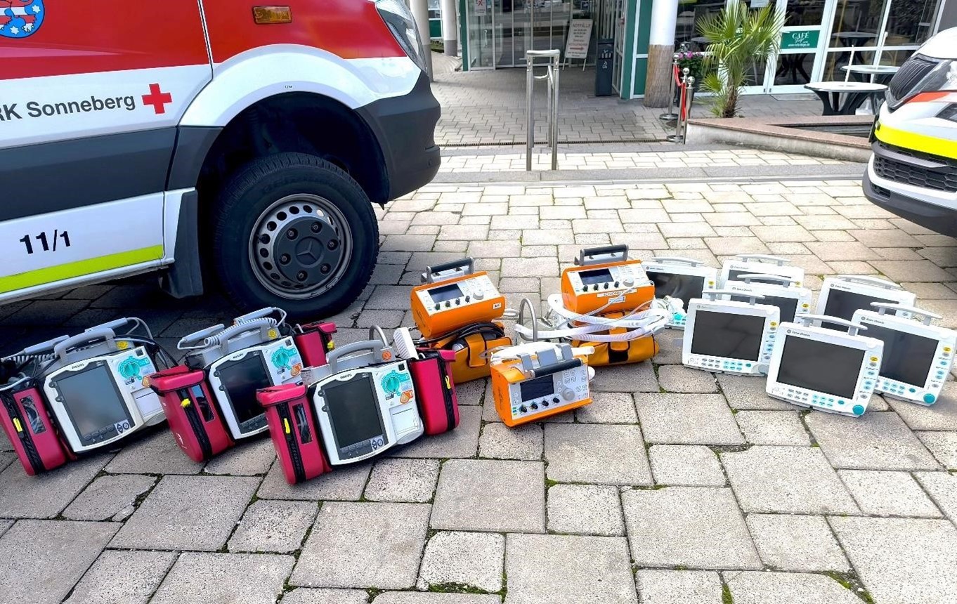 Insgesamt fünfzehn Geräte wurden dem Katastrophenschutz kürzlich zur Verfügung gestellt: Darunter befinden sich sieben Patientenüberwachungsmonitore, vier Beatmungsgeräte (Oxylogen) und vier Defibrillatoren. Die medizinische Ausstattung verbleibt damit in der Region und wird im Katastrophenschutz des Landkreises dringend benötigt.