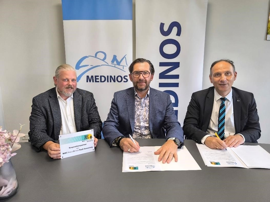 Schule, Wirtschaft und Medizin – die Zusammenarbeit dieser Institutionen soll in Zukunft in Sonneberg gestärkt werden. Christian Dressel, Stellvertretender Bürgermeister und Mitverantwortlicher der MINT-freundlichen Stadt Sonneberg, sagt dazu: „Mit MEDINOS gewinnen wir einen starken Partner, der unsere Vision teilt, junge Menschen frühzeitig für MINT-Themen zu begeistern und praxisnahe Lernangebote zu schaffen. Gemeinsam werden wir neue Wege gehen, um die technologische und wirtschaftliche Zukunft unserer Stadt nachhaltig zu gestalten.“