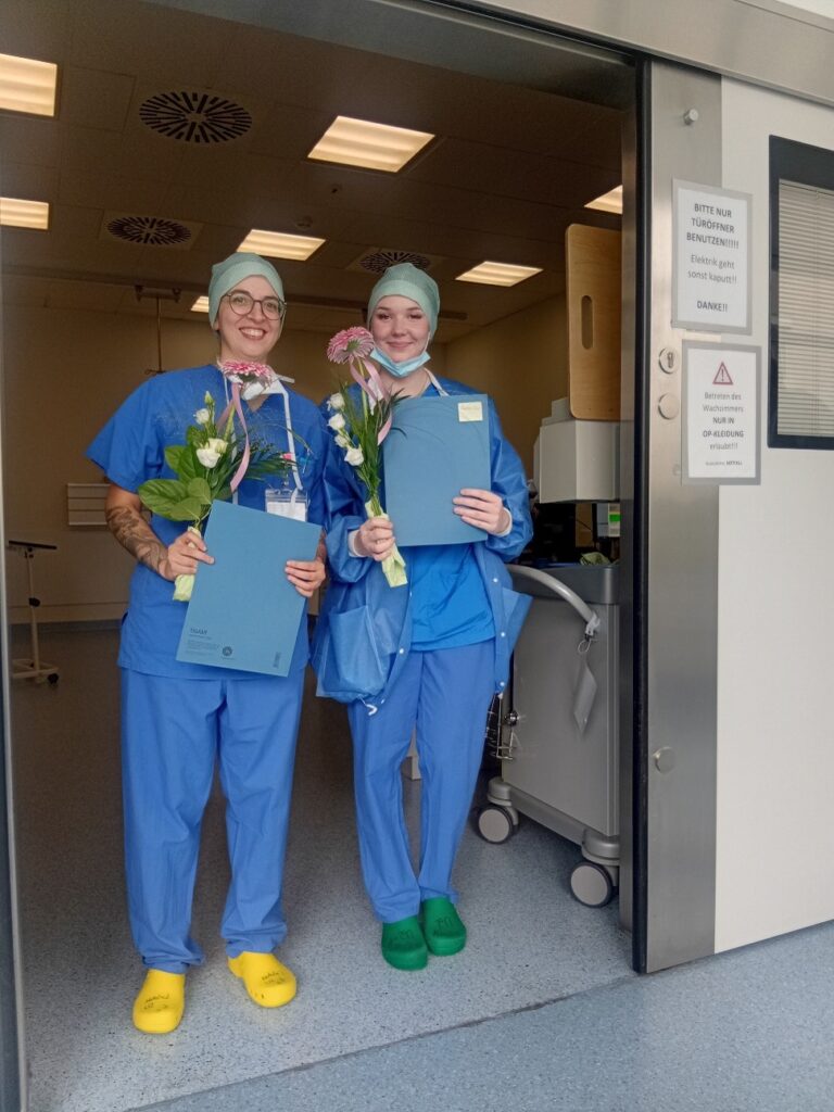 Auch nach ihrem Abschluss bleiben die drei Absolventinnen dem Unternehmen treu: Sie wurden direkt im Anschluss an ihre Prüfungen in ein festes Arbeitsverhältnis übernommen – je nach Einsatzbereich in der Klinik oder im Medizinischen Versorgungszentrum. Janine Greiner-Fuchs bereichert zukünftig die Funktionsdiagnostik Sonneberg. Vanessa Freitag beginnt in der Elektivaufnahme Sonneberg und Samantha Luthardt wird im MVZ Sonneberg eingesetzt.